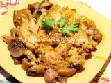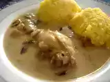 Ingrediente: 3-4 pulpe de pui- eu am pus dezosate 300 g. ciuperci 1 ceapa 2-3 catei de usturoi 50 gr. unt 2 linguri de faina 1 pahar de vin alb 4 linguri de...