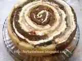 Ingrediente: Pentru blat maro: 5 oua , 100 g zahar , 50 g nuci prajite si macinate , 50 g faina ,20 g cacao. Se procedeaza ca la primul blat , punand o data cu...