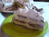 Ingrediente: -350 g faina -2 oua -1 pachet zahar vanilat -coaja de lamaie -5 linguri ulei -200 ml lapte -200 ml apa minerala Crema: 200 ml lapte 300 ml frisca-...