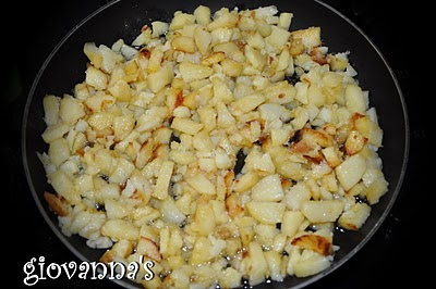 Apoi punem putin ulei intr-o tigaie anti aderenta in care vom face tortilla si mutam cartofii prajiti acolo. Ii saram.