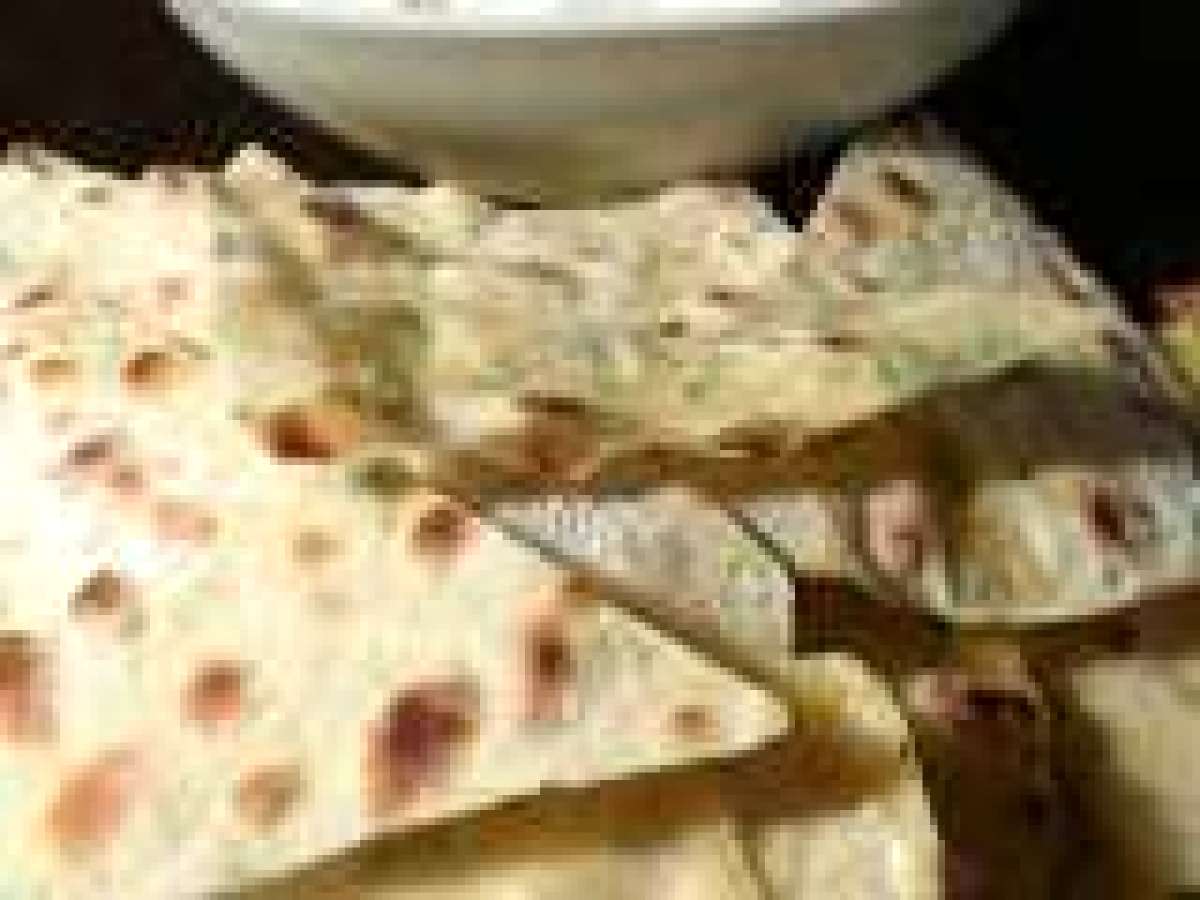 Fiecare foaie se frige intr-o tigaie incinsa fara nici un fel de grasime, pana incepe sa faca broboane. Atunci se intoarce pe partea cealalta. Apoi se taie felii ca la pizza, care se mananca alaturi de diverse sosuri (guacamole, salsa) sau nachos. Eu le-am mancat cu iaurt gras de bivolita. Sunt foarte crocante si aromate.