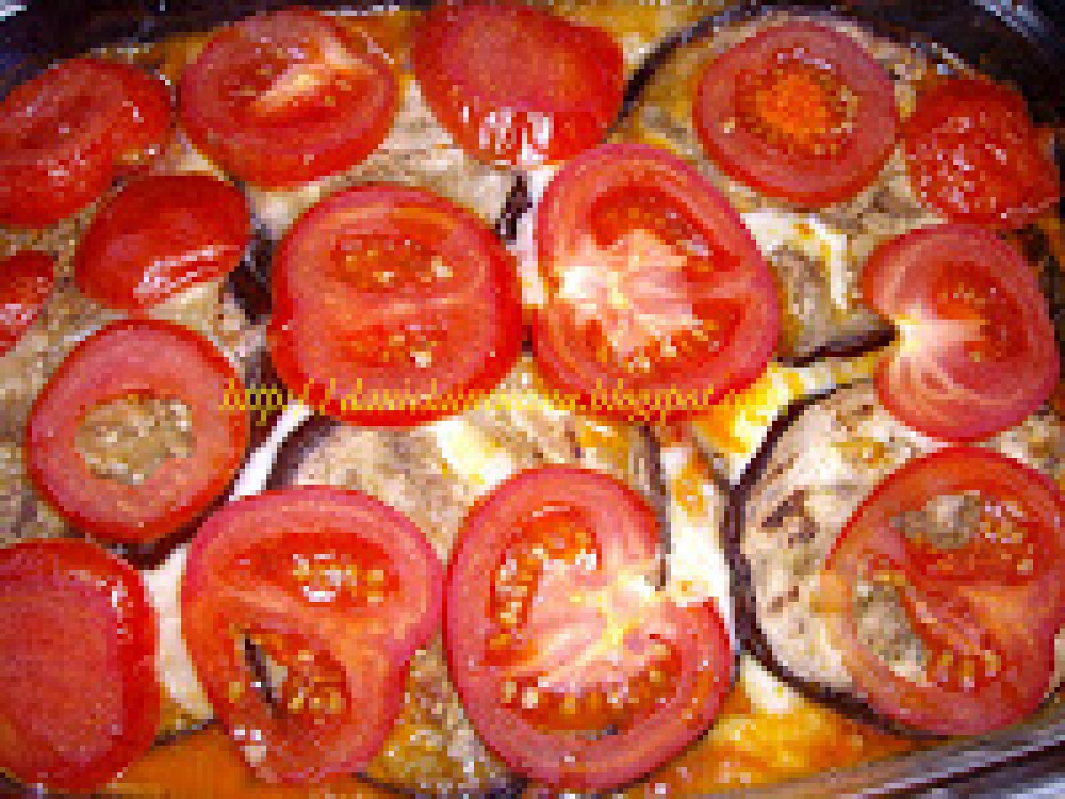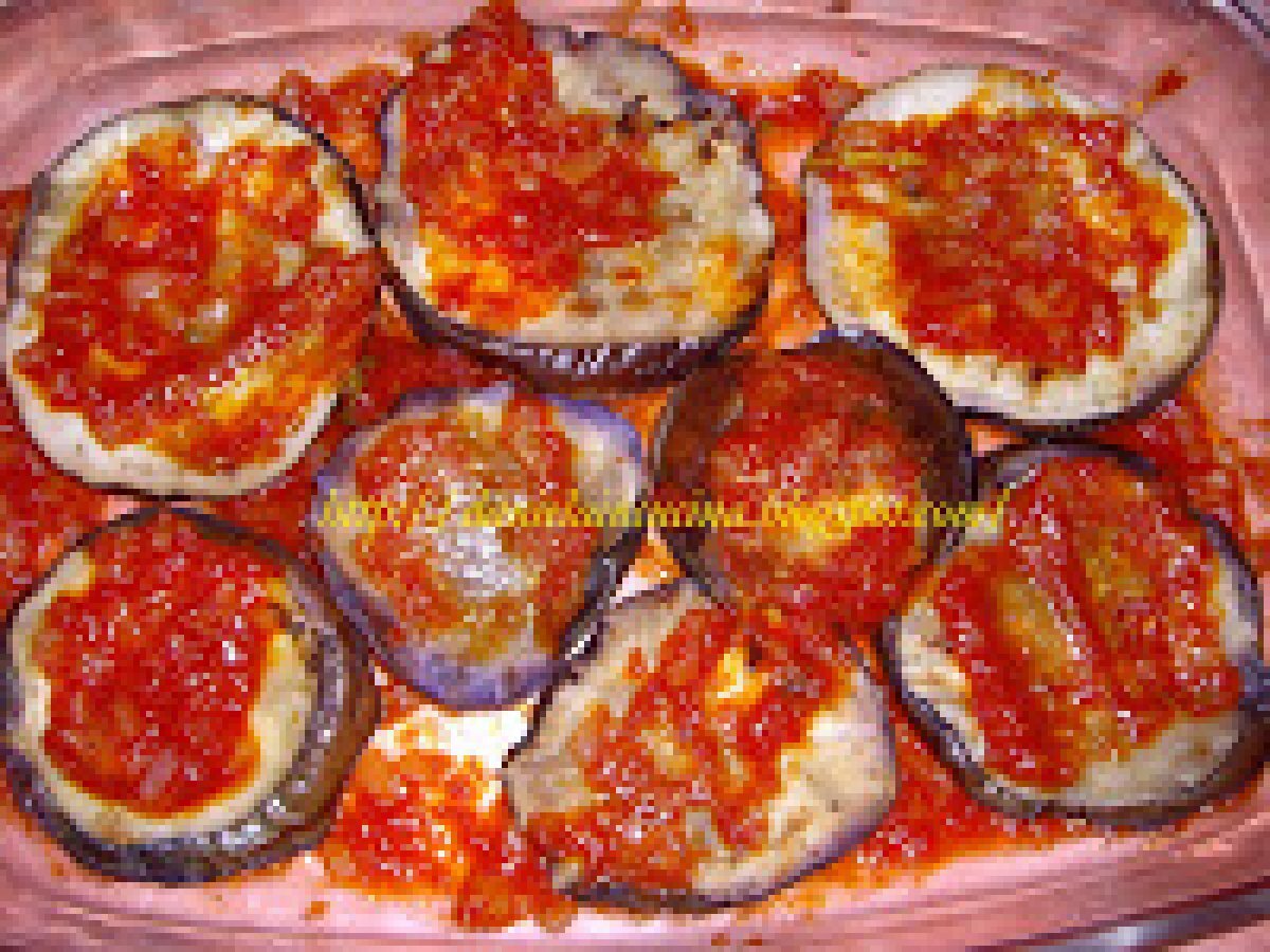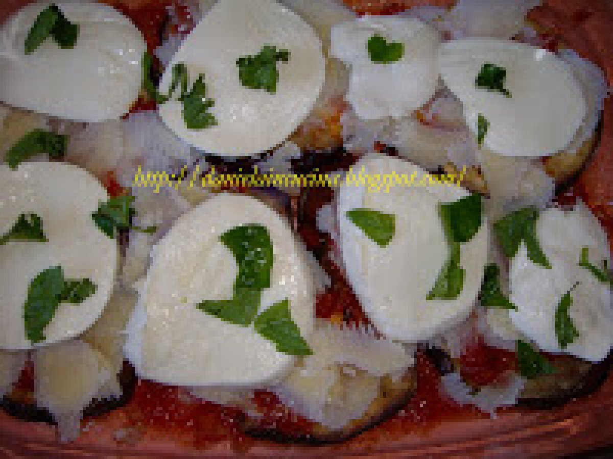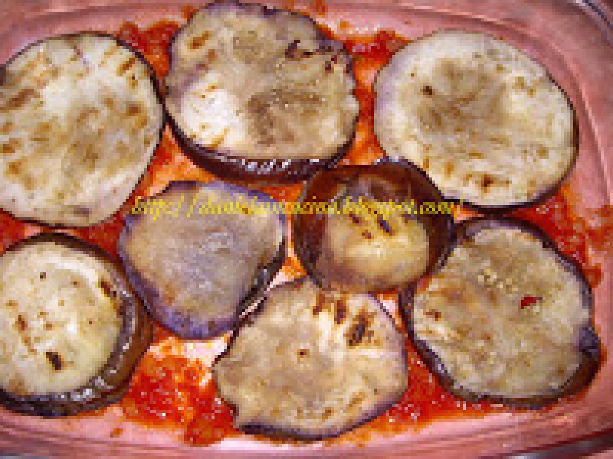 Parmigiana di melanzane PrecedentulUrmătorul Felul principalFoarte ușor40 min Trimite unui prieten Printează pagina Adresează o întrebare autorului Postează o poză cu rețeta gătită de tine Ingrediente 6 3 vinete o ceapa 500 g suc de rosii un catel usturoi 100 g de parmezan 400 g mozzarella 3 rosii (posibil din alea lunguiete) 3 ramurele de busuioc o lingurita zahar 2 linguri ulei masline sare