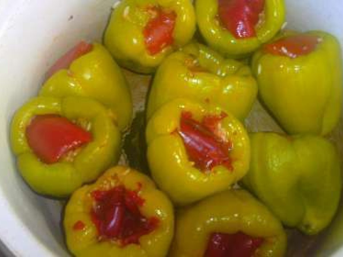 Ardei umpluti AlteleUșor55 min Trimite unui prieten Printează pagina Adresează o întrebare autorului Postează o poză cu rețeta gătită de tine Ingrediente 8 INGREDIENTE:10 ardei potriviti,200gr.orez,1morcov,o ceapa,4lg.de ulei,200gr.carne proaspata,150gr.carne afumata,1ou,piper boia sare,250ml.bulion(pasta),3lg.de faina,o lg.de smantana