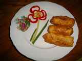 Ingrediente: 500 file piept de pui 6 castraveti in saramura 2 rosii, curatate de seminte si taiate cubulete o varza mica, taiata marunt, frecata cu sare si...