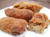 Ingrediente: 2 vinete mari 100 g telemea vaca sau oaie 100 g branza de vaci putina faina pentru prajit patrunjel marar sare piper 1 ou pentru prajit pesmet