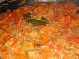Ingrediente: 3 vinete lungi 250 g carne tocata de vita 2 lg orez, 200 g rosii, 2 cepe medii 1 ardei gras 4 lg de bulion de rosii 3 lg ulei de masline...