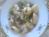 Ingrediente: 1 dovlecel mic 1 rosie mica 1 ciuperca mare alba sare piper 3-4 catei de usturoi tocati marunt busuioc proaspat maruntit cateva masline taiate...